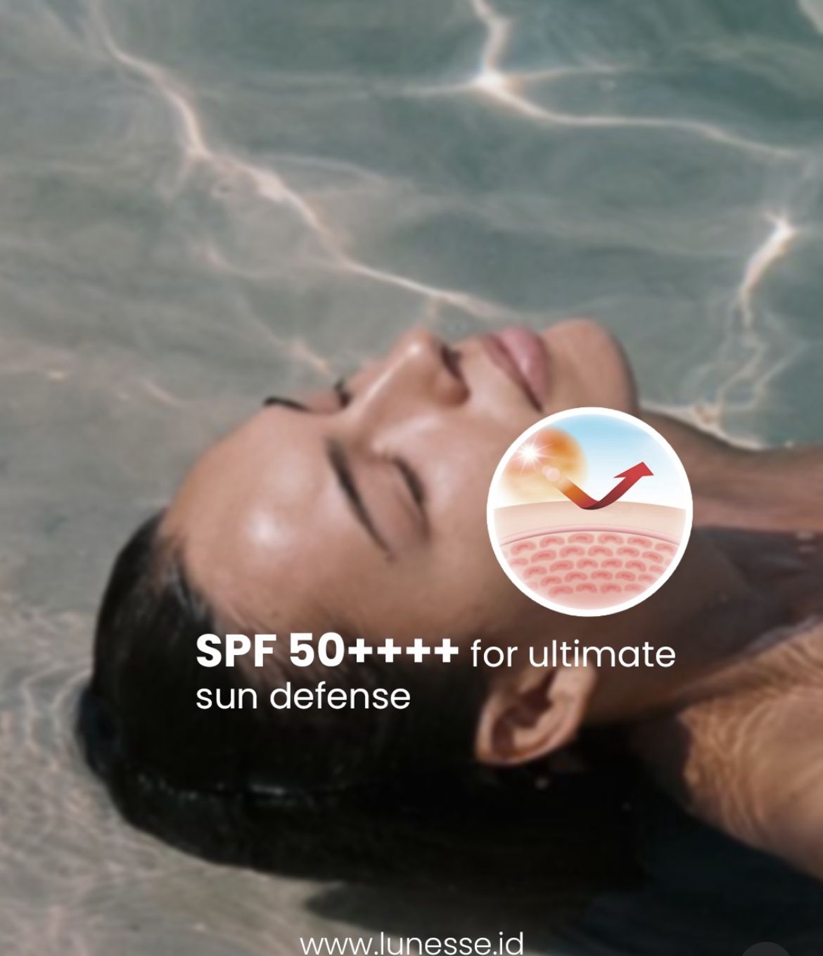 Gunakan Lunesse Daily Essential Sunscreen SPF 50+ PA++++ untuk melindungi kulit dari paparan sinar UVA dan UVB. Jangan lupa untuk melakukan re-apply setiap beberapa jam agar perlindungan kulit tetap maksimal dan membantu mencegah kulit kusam serta penuaan dini.